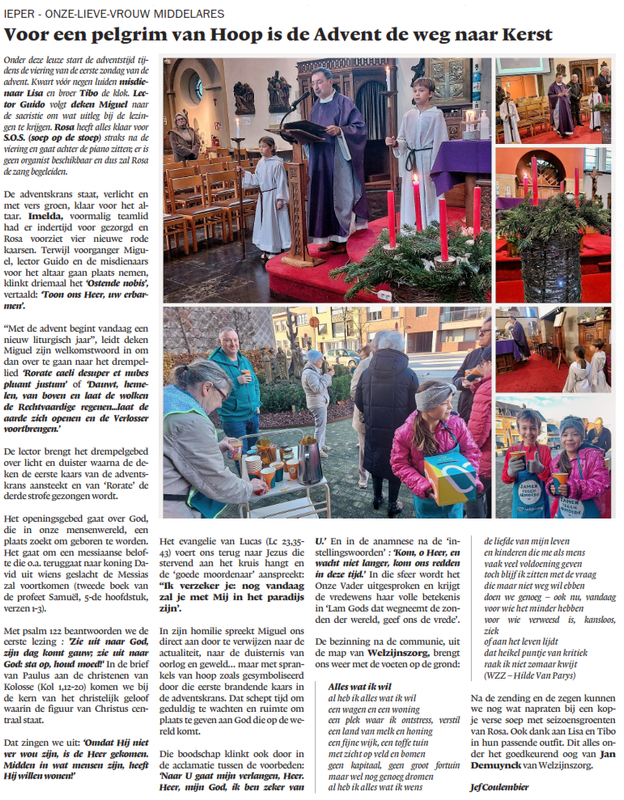 IEPER / ONZE-LIEVE-VROUW MIDDELARES Voor een pelgrim van Hoop is de Advent de weg naar Kerst