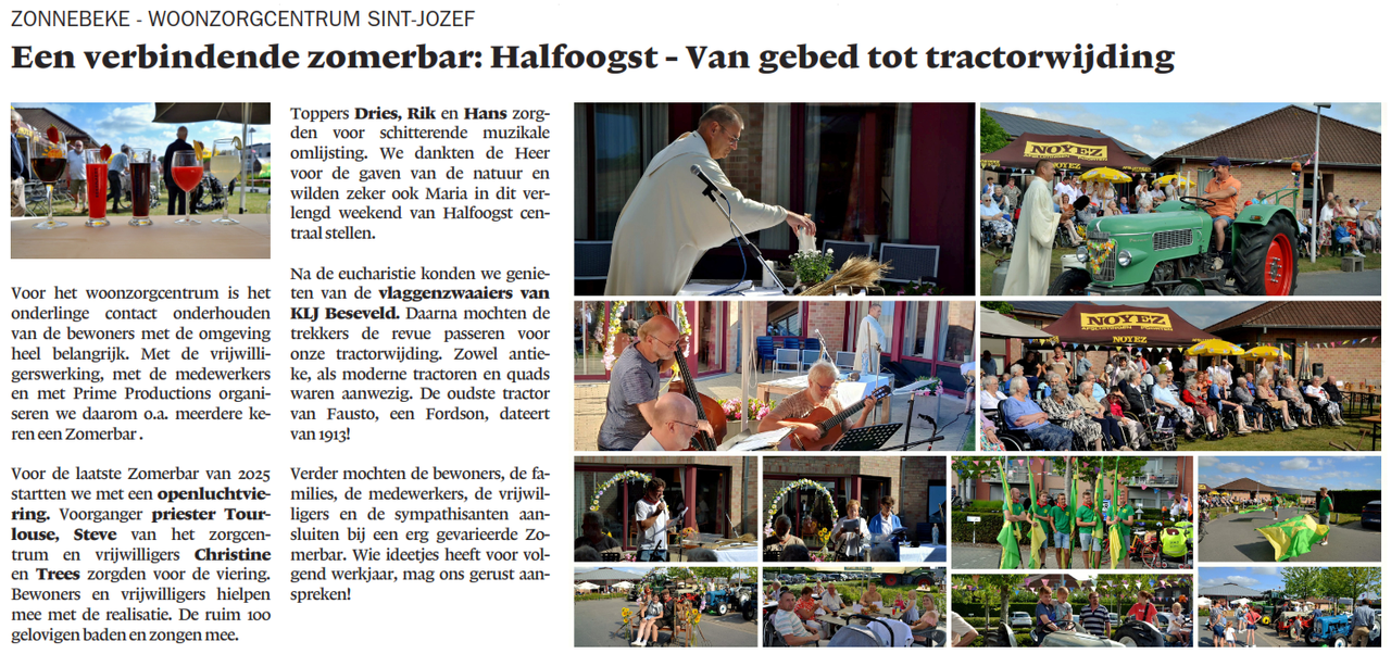 ZONNEBEKE - WOONZORGCENTRUM SINT-JOZEF: Een verbindende zomerbar: Halfoogst - Van gebed tot tractorwijding