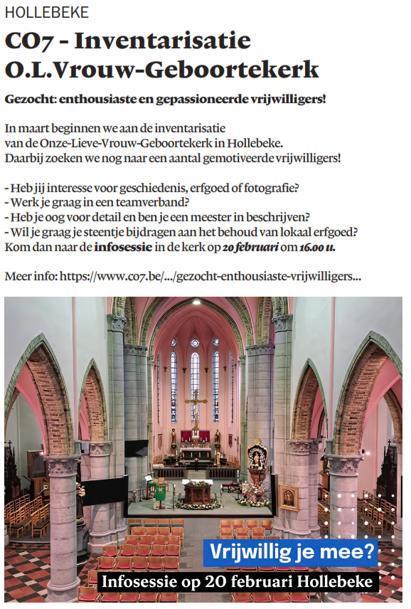 HOLLEBEKE - CO7 - Inventarisatie O.L.Vrouw-Geboortekerk - Gezocht: enthousiaste en gepassioneerde vrijwilligers!